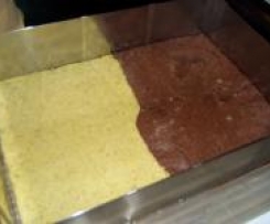 Beide Teige in einem Backrahmen oder auf einem Backblech ca. 10 Minuten bei 200° backen