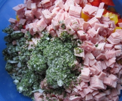 Sehr leckerer Salat. Hab den Salat ohne Schinken und mit weniger Paprika gemacht.