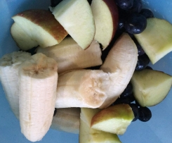 In der Zwischenzeit das Obst in große Stücke schneiden.