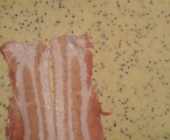 BAKON,SO WIE ER IN DER PACKUNG LIEGT,in der HÄLFTE durch schneiden( also Streifen halbieren;)