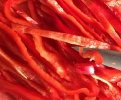 - 2 Schoten Spitzpaprika rot, in lange, dünne Streifen