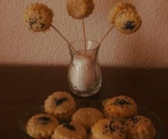 Holzspieße aus dem Wasser nehmen, trocken tupfen und je 1 Spieß in die Lollis stecken
