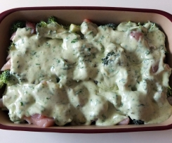 Hab statt Hühnerfleisch, Kartoffelscheiben genommen. Das Rezept ist spitze, Hammerlecker