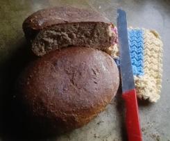 Ich hab das Brot "frei Schnauze" gebacken, ist etwas flach ( 7cm hoch) aber saulecker...... Eigentlich war es fürs Frühstück gedacht...... jetzt hab ich die Hälfte verdrückt......😇