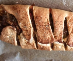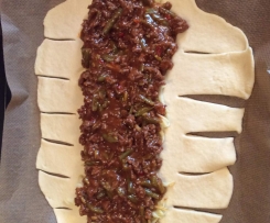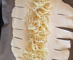 Teigstreifen über die gefüllte Mitte legen.