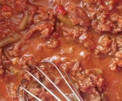 Rinderhack mit Bolognesesauce und Bohnen