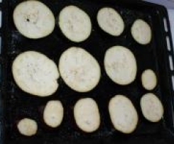 1. Auberginen in Scheiben schneiden, von beiden Seiten salzen.