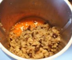 Es schmeckt ganz lecker, nur fand ich die Rezeptanleitung sehr verwirrend, ich habe ewig davor gesessen, bis ich es hinbekommen habe. Und Zwiebeln und Knoblauch 30 min dünsten? Wahrscheinlich nur drei Minuten, oder?