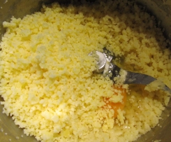 Den Mixtopf wieder einsetzen. Ei und Käse hinzufügen ....