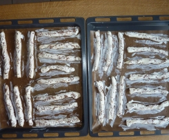 Die Stangen nochmals etwa 15 Minuten gehen lassen und dann bei 200° etwa 25 Minuten backen. Je nach Ofenleistung...