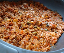 [[wysiwyg_imageupload:18068:]]Bitte darauf achten, dass weder die Bolo noch die Käsesauce zu flüssig oder zu trocken ist, auf die richtige Konsistens kommt es an, damit der Auflauf nicht matschig oder trocken wird - kommt immer etwas auf die Zutatenqualität an, aber nach diesem Rezept hats geklappt, der Auflauf war perfekt und sehr lecker - bei Schwierigkeiten: fragt mich tmrc_emoticons.-)