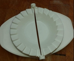 Hefeteig dünn ausrollen und mit einem großen Teigtaschenformer rund ausstechen. Teigscheibe auf den Teigtaschenformer legen, ca. 1 EL Füllung darauf geben und verschließen.