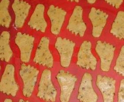 Teig portionsweise ausrollen und "Füße" ausstechen