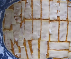 Die Käsescheiben gleichmäßig auf dem Teig verteilen.