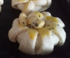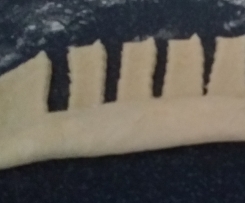 - Teig mit Eigelb gestreichen und mit schwarzen Sesam bestreuen
