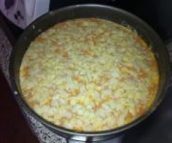 Somit kann ich Käsekuchen nicht als Vorratskuchen empfehlen, denn auch mir schmeckt er nur frisch gebacken am besten, da auch die Käsemasse nach mehreren Tagen nicht mehr so fluffig ist. Dann ist er genauso batzig wie vom Bäcker und die mag ich auch nicht.