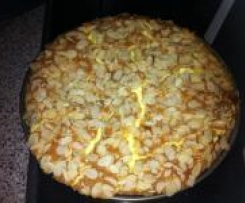 Zuerst die Amarettinibrösel und anschließend die Mandelblättchen darüberstreuen und 75 Min. bei 160 °C backen. Eventuell nach 45 Min. mit Alufolie abdecken.