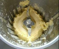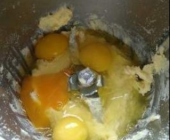 - Zucker, Butter, Vanileezucker und Salz in den Mixtopf geschlossen"Mixtopf geschlossen" geben und 30 sek./Stude 3 schaumig rühren.