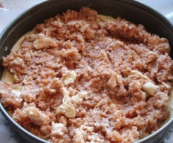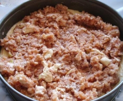 Aus Bequemlichkeit habe ich keine Apfelspalten verwendet, sondern die Äpfel mit Schale zerkleinert. Beim nächsten Mal nehme ich weniger denn im Verhältnis zum Teig wann ist schon sehr viele Äpfel.