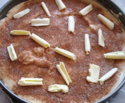 Einige Butterflöckchen auf dem Teig verteilen und im vorgeheizten Backofen / 180 ° - 45 Minuten backen. Wenn der Kuchen zu dunkel wird mit Alufolie abdecken