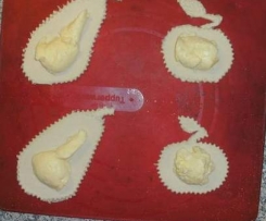 8. Auf den Teig je nach Form einen EL Pudding geben.