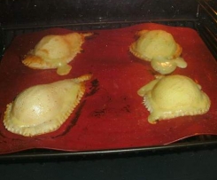 11. Backofen auf 180°C Umluft herunter schalten. Gebäck darin 20 - 25 Min. goldgelb backen.