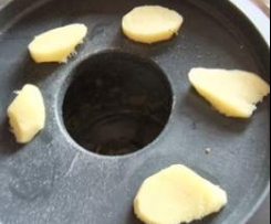 Den frischen, in Scheiben geschnittenen Ingwer auf den Deckel legen 6 Sekunden einstellen und bei Stufe 6 die Scheiben nach einander auf das laufende Messer fallen lassen. Im Originalrezept gehört ein Esslöffel in Sirup eingelegter Ingwer rein, den ich aber nicht zufällig zu Hause hatte. Ich denke, man kann die Pie auch ganz ohne Ingwer machen und/oder andere Gewürze verwenden.