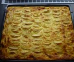 Der Teig war uns zu trocken, kann man aber mit etwas mehr Milch leicht beheben. Außerdem war der Guss obendrauf sehr sparsam, ich musste nochmal nacharbeiten und hatte zum Schluss 400g Schmand, 200g Sauerrahm und ca 200g Magerquark - mehr gab der Kühlschrank nicht her. Ich habe von vornherein den Zucker im Guss auf 100g reduziert, was völlig ausreichend war.