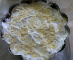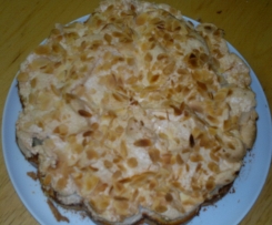 , Rühraufsatz einsetzen und in ca. 2 1/2 min bei 60 Grad Stufe 4 steifschlagen und den Zimtzucker am Ende einrieseln lassen. Die Masse auf den vorgebackenen Kuchen streichen und mit den Mandelblättchen bestreuen.