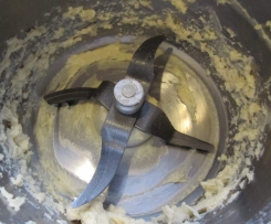 Der Teig ist recht klebrig, aber wenn man die Reste kurz mit der Turbo-Taste rührt, bekommt man ihn ganz gut aus dem Topf.