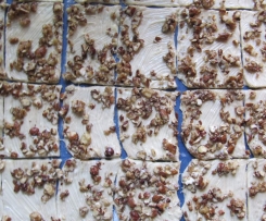 .... 1-2 Sek. / St. 6 zerkleinern und zu den Mandeln geben. Die Walnusskerne von Hand etwas zerkleinern und mit den Mandeln und Nüssen vermischen.
