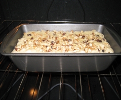 Die Walnüsse waren bei mir nach Anleitung nicht untergerührt, sonder schwammen immer noch oben auf der Teigmasse herum.