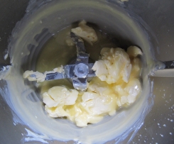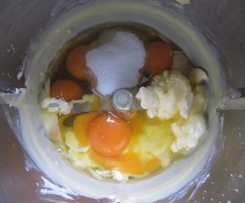 "Mixtopf geschlossen" wiegen und 2 Min. / 37 °C / St. 1 "erweichen". - Zucker und Eier hinzufügen .....