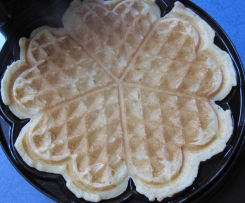 - Den Teig portionsweise zu Waffeln backen. Die Teigmenge beträgt ca. 1.500 ml. Mit meinem Waffeleisen bekomme ich daraus 25 Stück. Das ist aber je nach Gerät unterschiedlich.