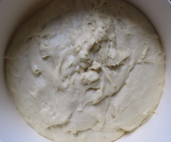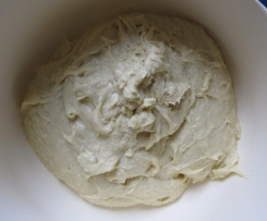 " Modus „Teig kneten“" . Teig umfüllen (er ist ziemlich weich!) und während der weiteren Zubereitungsschritte abgedeckt im Herd bei 30 °C gehen lassen .....