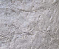 In dieser Zeit ein tiefes Backblech (Fettpfanne) einfetten, den Hefeteig mit der Hand darauf verteilen und mit einer Gabel Löcher in den Teig stechen.
