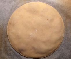 Jedes Teilstück ca 30 cm gross und rund auswellen. Mit Hilfe einer Vorlage einen Kreis ausschneiden.