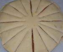 4. Jetzt mit einem Messer den Teig in 16 Stücke teilen, ohne dabei die Mitte des Teiges zu schneiden.