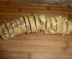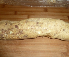 Teig zu einer länglichen Wurst formen und in Klarsichfolie wickeln.