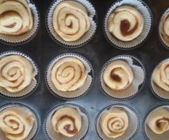 Auf einer bemehlten Arbeitsfläche ein Rechteck ca. 40 x 30 cm (ca. 3 mm dick) ausrollen und mit der Zimtfüllung bestreichen. Der Länge nach halbieren und von der Längsseite her eng aufrollen und in 3 cm breite Stücke schneiden, und mit der Schnittfläche nach unten in die vorbereiteten Mulden der Muffinsform geben.
