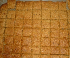 "Linkslauf" / St. 2 miteinander vermischen. Eventl. den Spatel dazu nehmen. Die Masse nun in eine vorbereitete Form geben ( runde Silikonform oder mit Backpapier ausgelegtes Backblech mit Backrahmen). Das Ganze im vorgeheizten Backofen bei 160°C ca. 25-30Min. backen. Nocvh warm in kleine Stücke schneiden. In einer Metalldose mehrere Wochen haltbar, falls solange vorrätig.