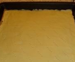 Teig auf das Backblech mit Backpapier geben und mit den Fingern oder einer kleinen Rolle (aber mit wenig Mehl) gleichmäßig verteilen, 30 Minuten kalt stellen.