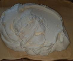 Den restlichen halben Becher Sahne mit 1 Eidotter verrühren und über die Quarkmasse geben.