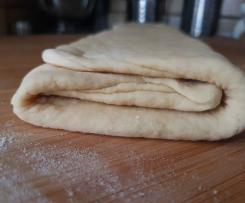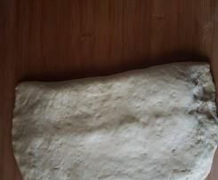 wenig Mehl ausstreuen, Teig auf ca. 30x25cm ausrollen