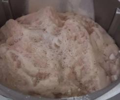 500gr Mehl in den Mixtopf und eine Mulde bilden. Hefemilch Maße reingeben, Deckel drauf und 15min etwas aufgehen lassen.
