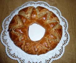 Zum Schluss wird der Kranz mit dem (mit 1EL Milch verquirlten) Eigelb bestrichen.