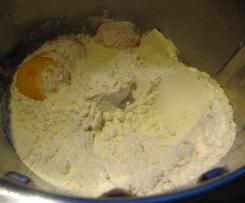 - Alle Teigzutaten in den Mixtopf wiegen ....