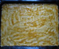 - Diese Masse auf den Teig mit der Aprikosenmarmelade geben ...