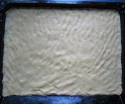 - Ein Backblech einfetten. Den Teig darauf geben und von Hand auf dem Blech verteilen (oder ausrollen).