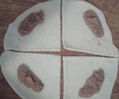 Als Füllung habe ich selbstgemachte Quittenmarmelade genommen.Mann kann aber auch andere Füllungen nehmen,oder in der Marmelade z.B. gehackte Nüsse mischen,je nach Lust und Laune!